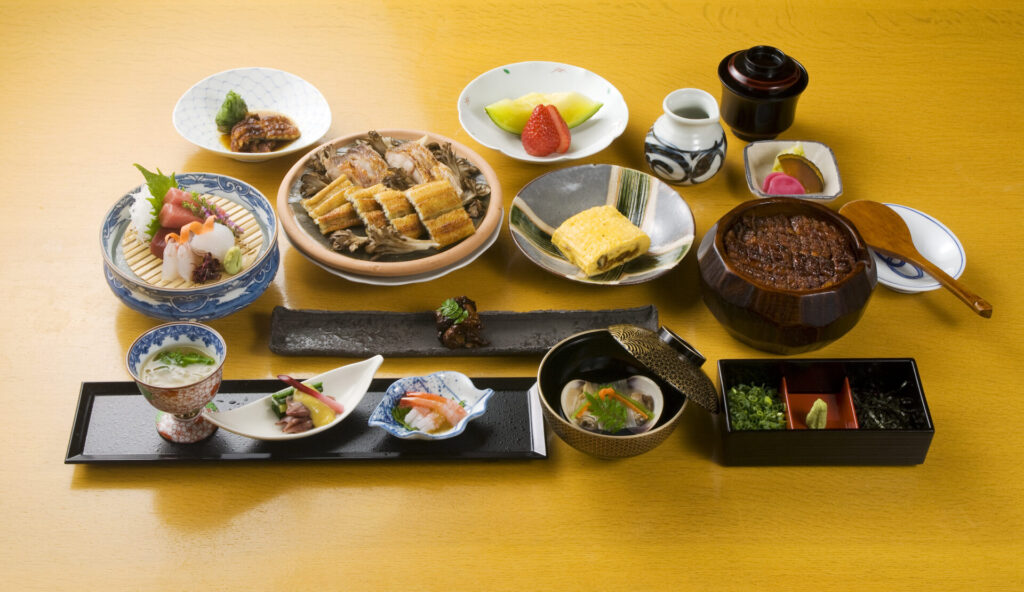 うなぎを中心とした会席料理です。いろいろなうなぎ料理をお楽しみください。食事にはひつまぶしもお召し上がりいただけます。要予約。※写真はイメージです