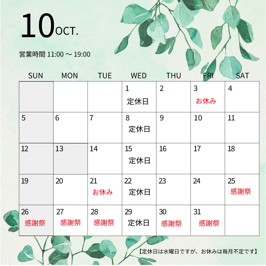 いつもFORESTA di OLIOをご利用頂き誠にありがとうございます。勝手ながら下記の日程をお休みとさせていただきます。
